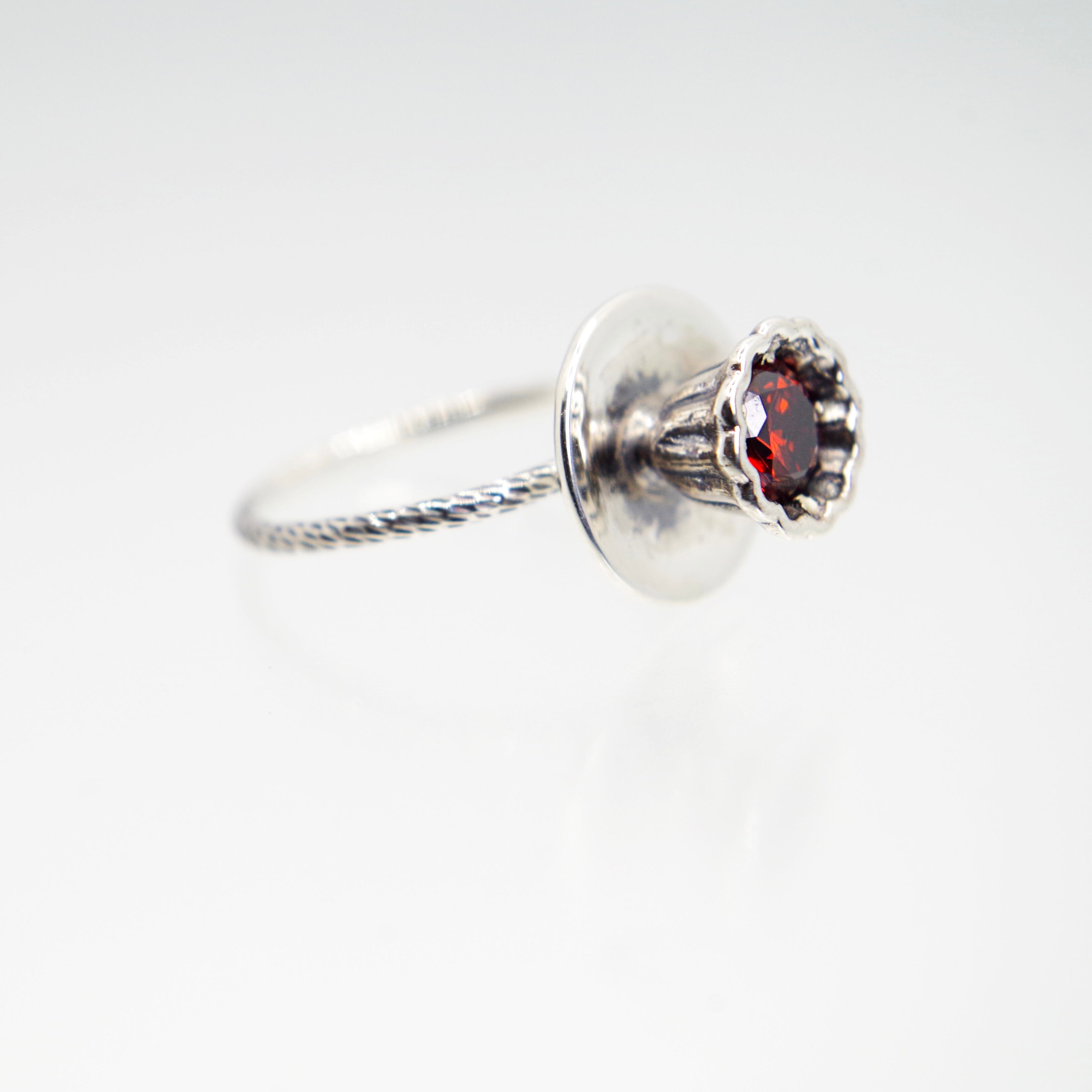 紅茶をイメージした赤のキュービックジルコニアが留められています。
